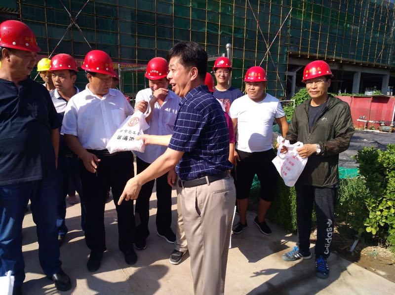 7月25日邯鄲市委副書記師振軍同志委托市總工會周志理副主席和永年區(qū)委副書記王銀明同志到項目慰問一線農(nóng)民工。