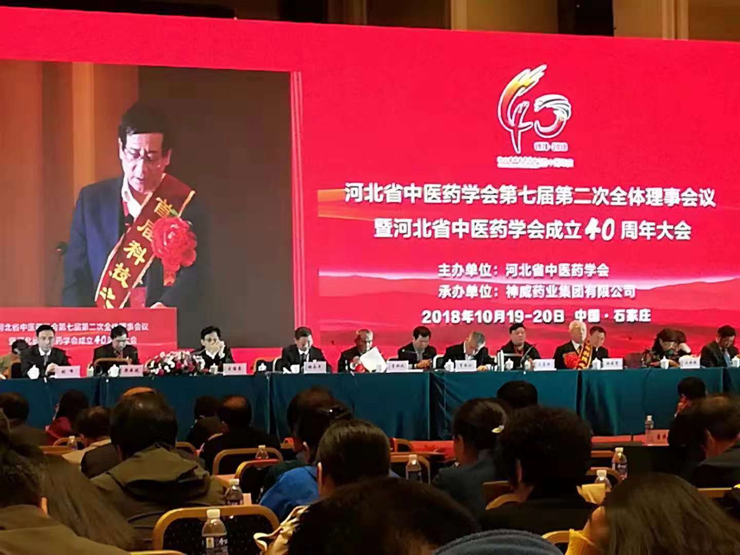 2018年10月19-20日,由河北省中醫(yī)藥學(xué)會主辦,神威藥業(yè)集團(tuán)有限公司承辦的河北省中醫(yī)藥學(xué)會第七屆第二次全體理事會議暨河北省中醫(yī)藥學(xué)會成立40周年大會在石家莊隆重召開。我公司董事長王少華先生出席了本次會議。我院河北趙都中西醫(yī)結(jié)合醫(yī)院被授予“2018年度先進(jìn)會員單位”